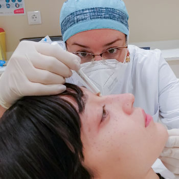 Administração: Com a área preparada limpa e desinfectada, o médico começará a administração do ácido hialurónico.