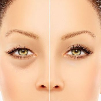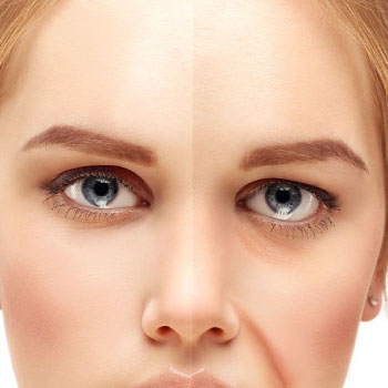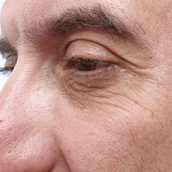 Presença de rugas e linhas finas na área das pálpebras inferiores.